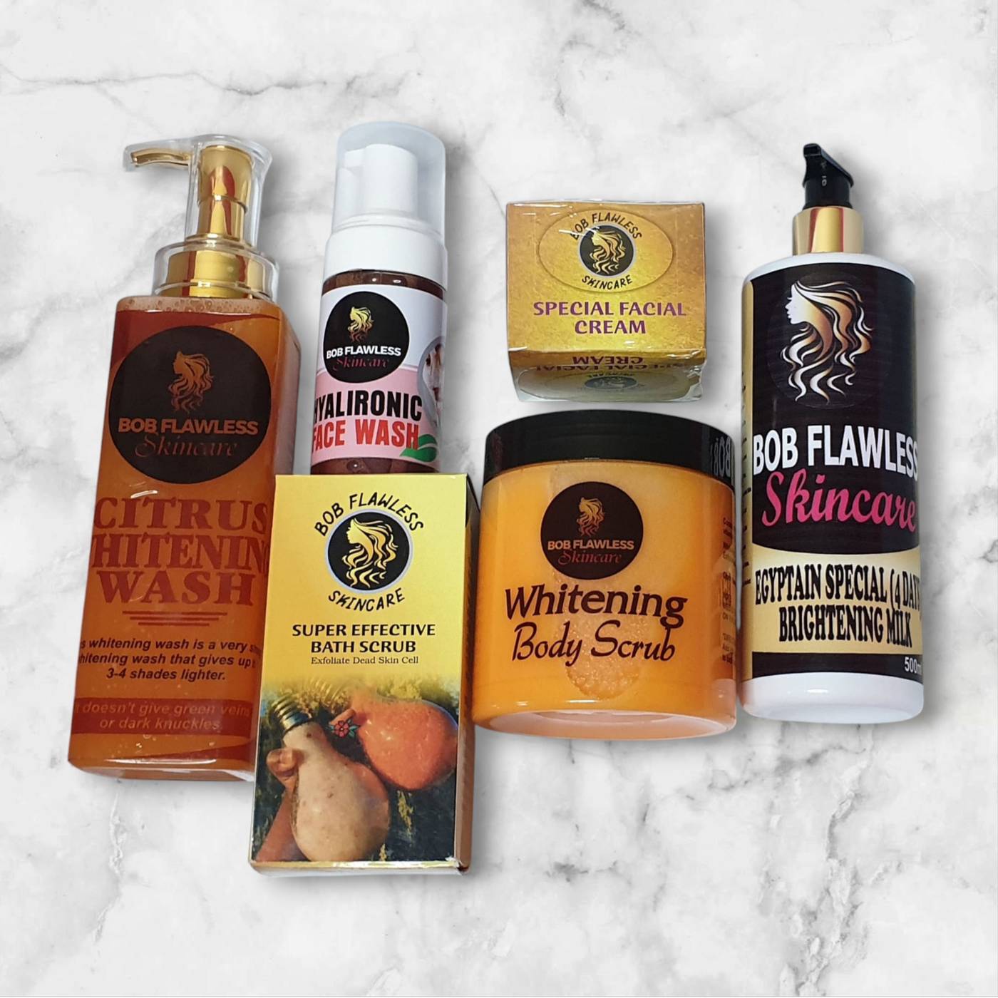 Egyptian whitening kit is a set of whitening products that gives a clean, white, flawless and glowing complexion without spots, blemishes or dark knuckles